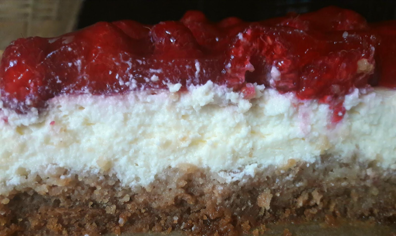 Pe tartă pun zmeura. Și peste ea torn jeleul (care trebuie să fie răcit dar înainte să se închege).